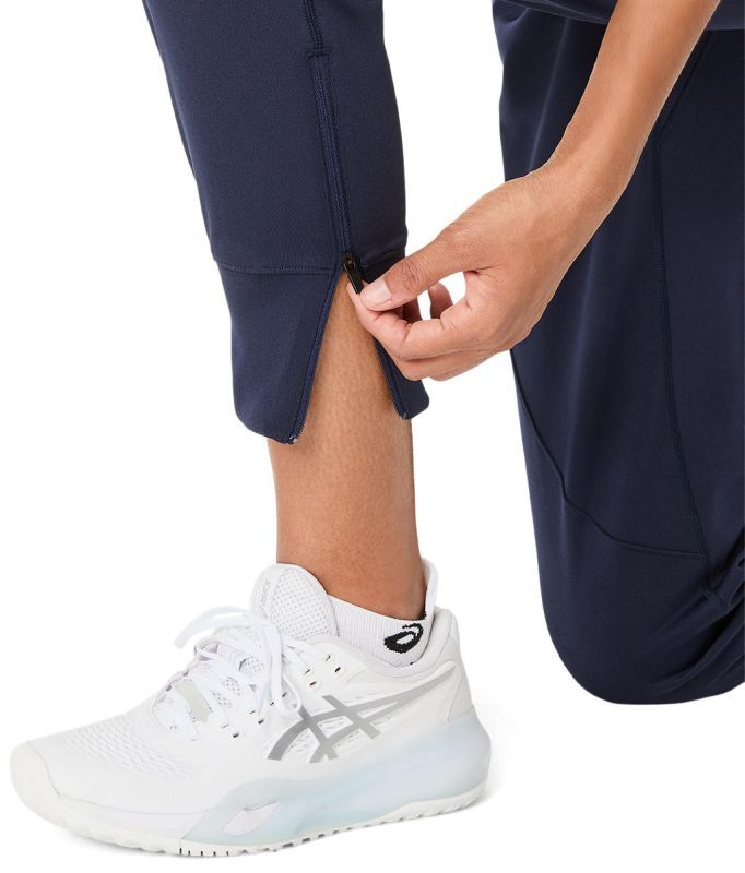 Женские брюки Asics Court Warm-Up — легкие спортивные брюки с комфортным, свободным кроем. Широкая эластичная резинка на поясе вместе с внутренним шнурком обеспечивает очень хорошую посадку и комфорт во время активности. Два боковых кармана с внутренней сеткой для лучшей вентиляции делают эти брюки особенно удобными для тренировок и игр. На сайте tennis-24.ru вы найдете этот идеальный вариант для спорта и повседневного использования. Низ штанин можно частично расстегнуть с помощью молний, а плоские швы минимизируют риск натираний и раздражений.