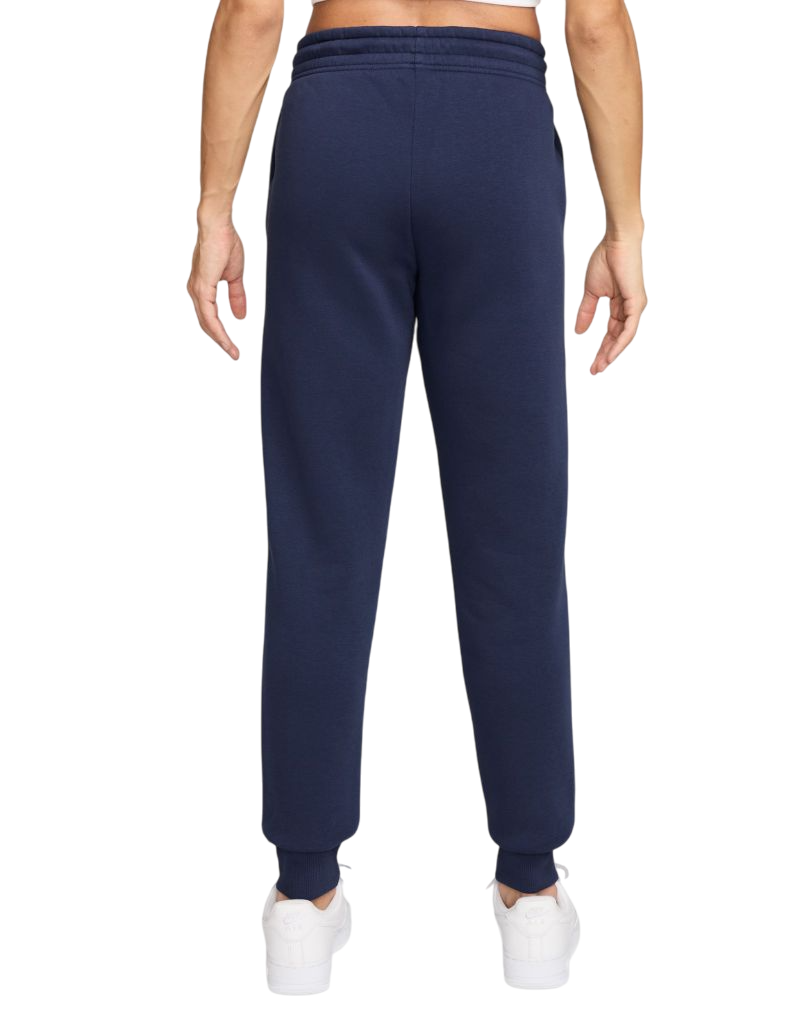 Женские брюки Nike Sportswear Phoenix Fleece - midnight navy/sail. Брюки с обычным кроем, обеспечивающим свободу движений. Изготовлены из приятного на ощупь и комфортного материала. Эластичная резинка на поясе вместе со шнурком позволяет идеально подогнать. Флисовая подкладка обеспечивает тепло и комфорт в холодные дни. Брюки имеют вместительные боковые карманы и логотип производителя, видимый с левой стороны. Низ штанин завершен эластичной резинкой для лучшей посадки и удобства ношения.