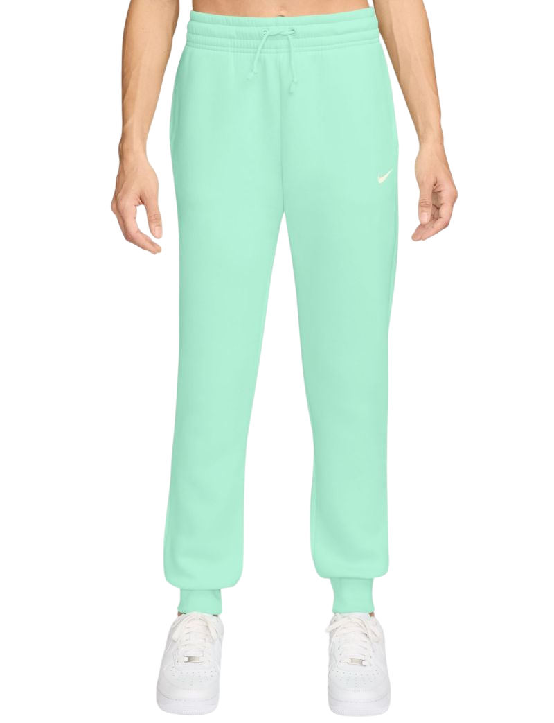 Женские брюки Nike Sportswear Phoenix Fleece - mint foam/sail. Брюки с обычным кроем, обеспечивающим свободу движений. Выполнены из приятного на ощупь и комфортного материала. Эластичная резинка на поясе вместе со шнурком позволяет идеально подогнать. Флисовая подкладка обеспечивает тепло и комфорт в холодные дни. Брюки имеют вместительные боковые карманы и логотип производителя, видимый с левой стороны. Низ штанин завершен эластичной резинкой для лучшей посадки и удобства ношения.