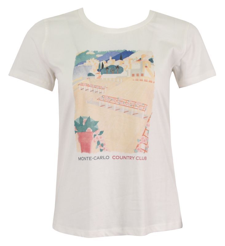 Женская теннисная футболка Monte-Carlo Country Club Poster Print - milk. Классическая, простая футболка прямого кроя. Выполнена из 100% хлопкового материала, обеспечит высокий комфорт и удобство при ношении. В центральной части графический мотив, отсылающий к Monte-Carlo Country Club. Магазин tennis-24.ru предлагает эту модель, которая идеально подойдет как для корта и тренировок, так и для повседневного использования.