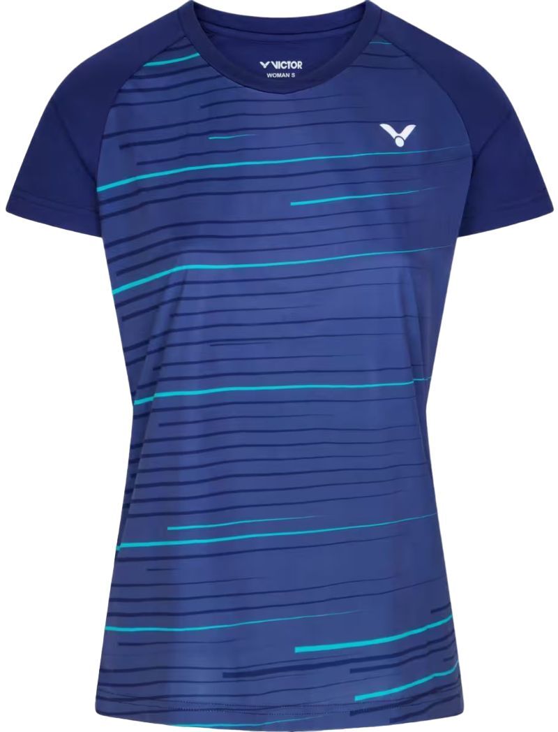 Женская теннисная футболка Victor T-34100 B. Футболка стандартного кроя с округлым вырезом под шеей. Изготовлена из легкого и комфортного полиэстерового материала. Легко растягивающаяся ткань хорошо облегает тело, обеспечивая комфорт во время активности. Магазин tennis-24.ru предлагает этот товар для тех, кто ценит качество и удобство. Рукава реглан обеспечивают удобство и свободу движений. Логотип производителя размещен на левой груди. Футболка выполнена из дышащего материала, эффективно отводящего влагу. Идеальный выбор для тренировок, игр и повседневного использования.