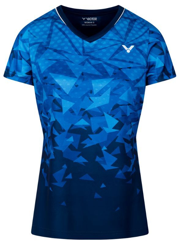 Женская теннисная футболка Victor T-54100 B — футболка приталенного кроя с V-образным вырезом. Изготовлена из легкого и комфортного полиэстерового материала. Легко растягивающаяся ткань хорошо облегает тело, обеспечивая комфорт во время активности. На сайте tennis-24.ru вы найдете этот товар с логотипом производителя, размещенным на левой груди. Футболка выполнена из дышащего материала, эффективно отводящего влагу. Идеальный выбор для тренировок, игр и повседневного использования.
