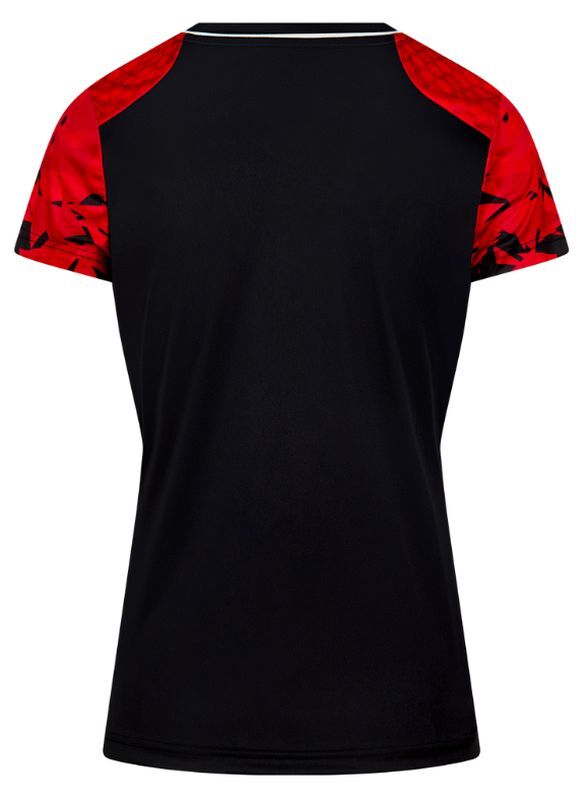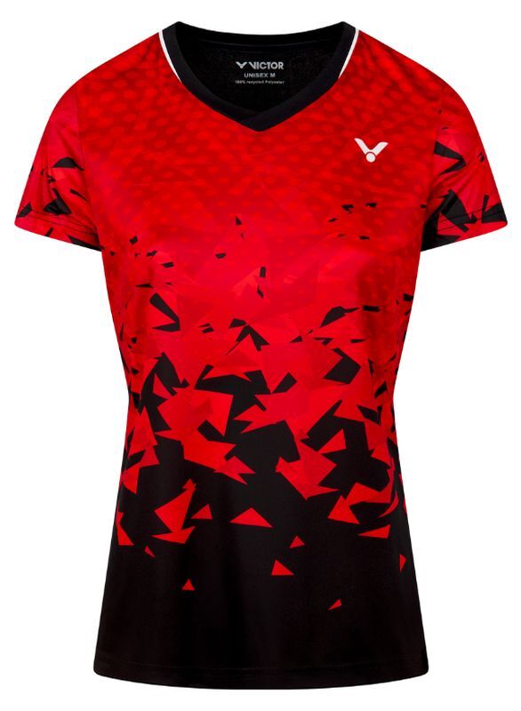 Женская теннисная футболка Victor T-54101 D. Футболка приталенного кроя с V-образным вырезом. Изготовлена из легкого и комфортного полиэстерового материала. Немного эластичная ткань хорошо облегает тело, обеспечивая комфорт во время активности. Логотип производителя размещен на левой груди. На сайте tennis-24.ru вы найдете широкий выбор спортивной одежды для тенниса. Футболка выполнена из дышащего материала, эффективно отводящего влагу. Идеальный выбор для тренировок, игр и повседневного использования.