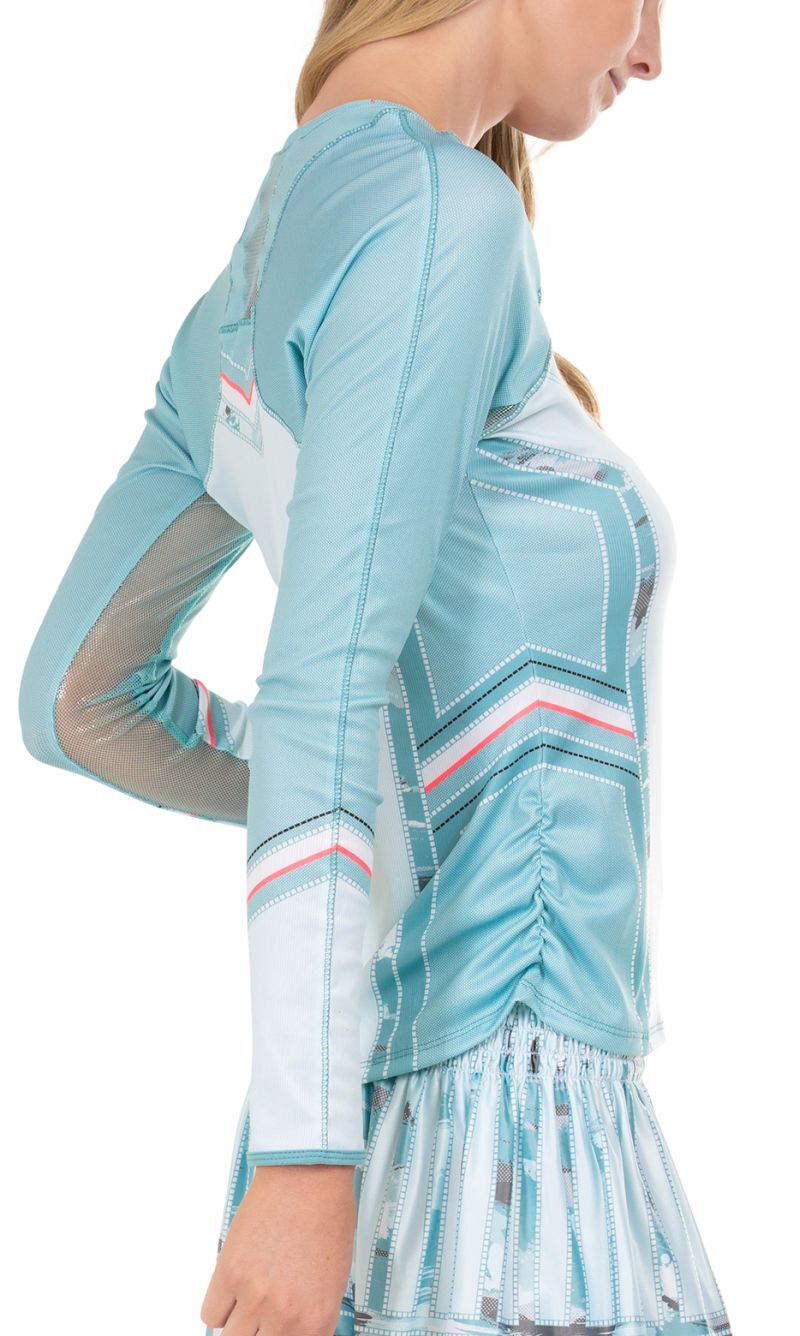 Женская теннисная футболка z dlugim rekawem Lucky in Love Can't Find Me Love Long Sleeve - eucalyptus. Стильная, легкая футболка из эластичного материала. Многочисленные вставки из тонкой, блестящей сетки улучшают вентиляцию, обеспечивая комфорт и удобство во время активности. Магазин tennis-24.ru предлагает этот товар для тех, кто ценит качество и стиль. Удлиненная спинка гарантирует дополнительную защиту, а плоские швы минимизируют риск натираний и раздражений. Боковые сборки и неоновые акценты позволят выделиться на корте. Футболка выполнена из дышащего, хорошо отводящего влагу материала с применением технологии VAPORTEX.