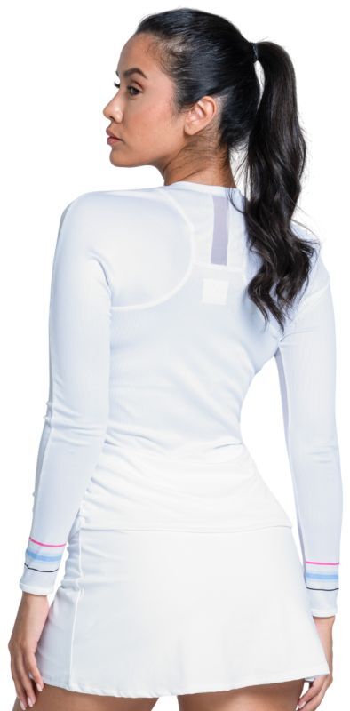Женская теннисная футболка z dlugim rekawem Lucky in Love Got The Blues Blue Streak Long Sleeve — стильная, легкая футболка из эластичного материала, который идеально подходит для динамичной игры. Многочисленные вставки из тонкой сетки увеличивают вентиляцию, обеспечивая комфорт и удобство во время активности. Магазин tennis-24.ru предлагает этот товар для тех, кто ценит качество и стиль на корте. Длинные рукава и закругленный низ гарантируют дополнительную защиту, а плоские швы минимизируют риск натираний и раздражений. Боковые сборки и цветные акценты помогут выделиться на корте. Изготовлена из дышащего, быстросохнущего материала, который отлично отводит влагу, обеспечивая ощущение свежести даже при интенсивных нагрузках. Футболка выполнена из высококачественных материалов с применением технологии VAPORTEX.