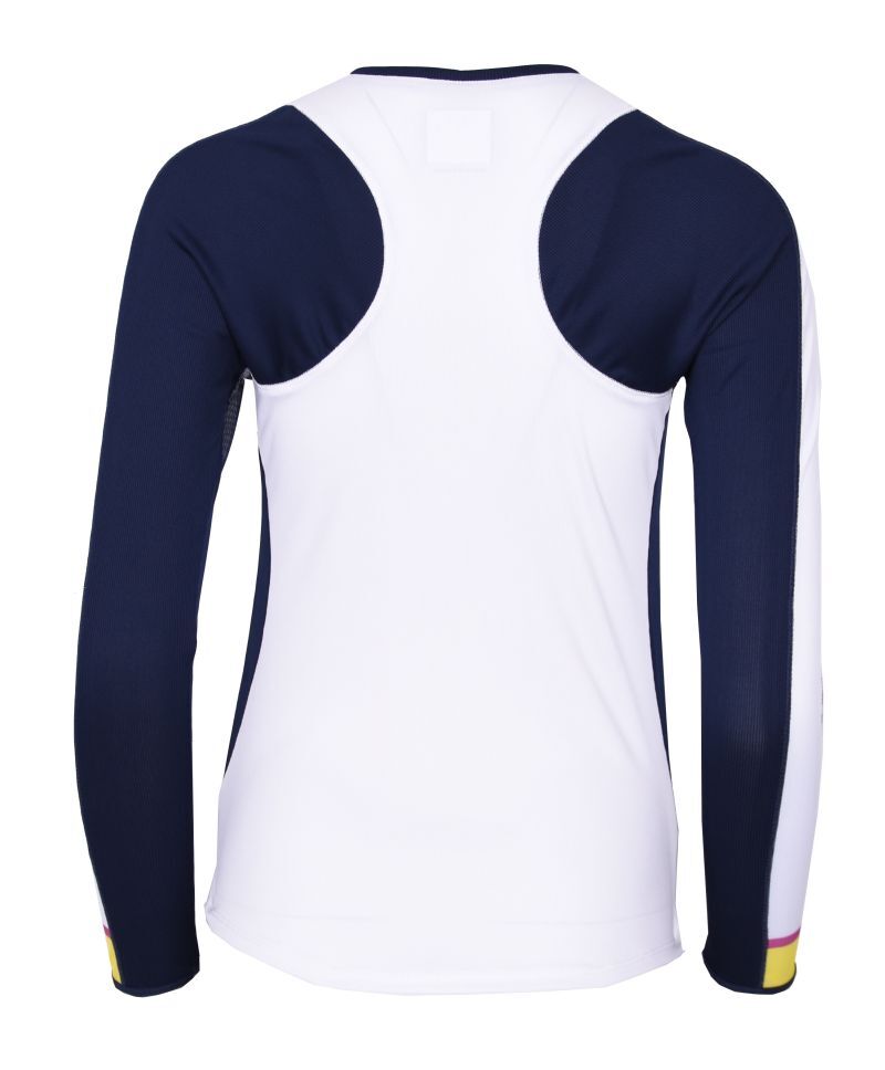 Женская теннисная футболка z dlugim rekawem Lucky in Love Love bound Long Sleeeeve - white. Стильная футболка из эластичного ребристого материала отлично облегает тело, обеспечивая свободу движений. Вставка из тонкой сетки по всей длине рукава обеспечивает лучшую вентиляцию. Магазин tennis-24.ru предлагает этот товар для максимального комфорта на корте. Немного удлинённая спинка и закруглённый низ обеспечивают защиту и комфорт при ношении. Плоские швы минимизируют риск натираний и раздражений. Футболка выполнена с использованием технологии VAPORTEX.