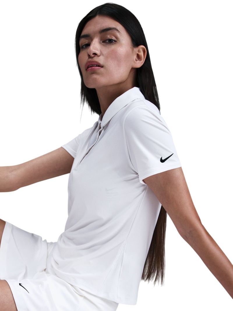 Женское поло Nike Dri-Fit Victory Short Sleeve - белое/черное. Поло с приталенным кроем. Застежка под горлом на четыре пуговицы. Вставки из ткани по бокам увеличивают свободу движений, а слегка закругленный низ обеспечивает дополнительную защиту. Вышитый логотип на левом рукаве. Поло выполнено из дышащего материала с применением технологии DRI-FIT.