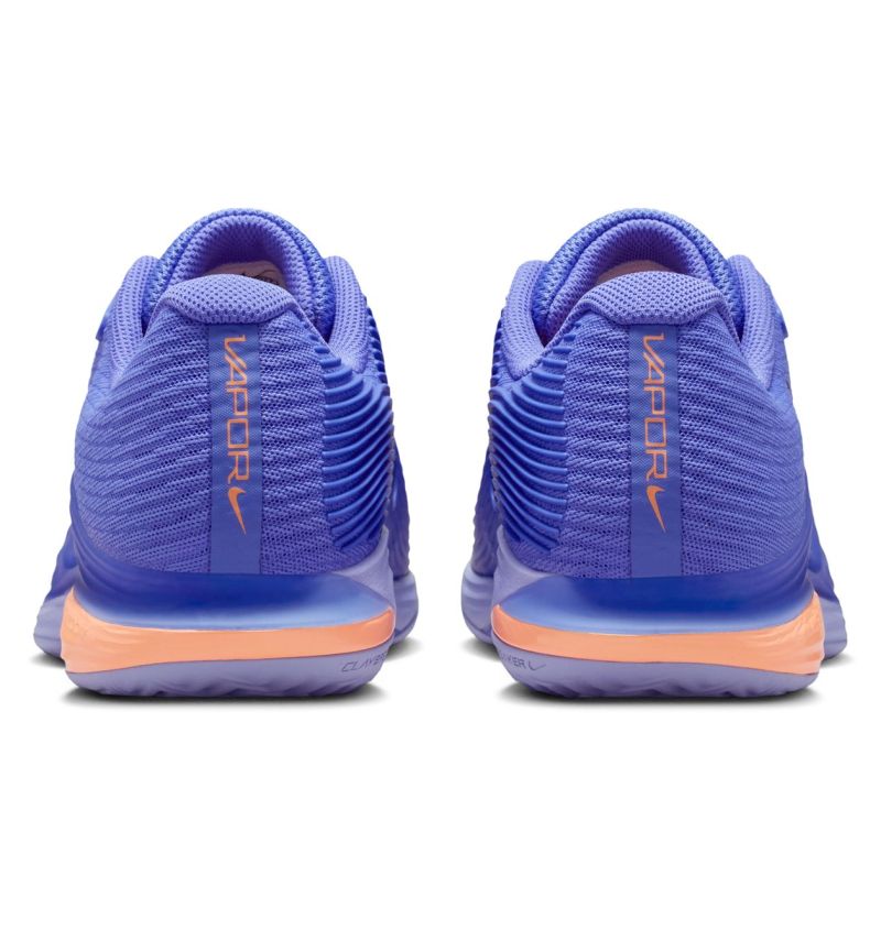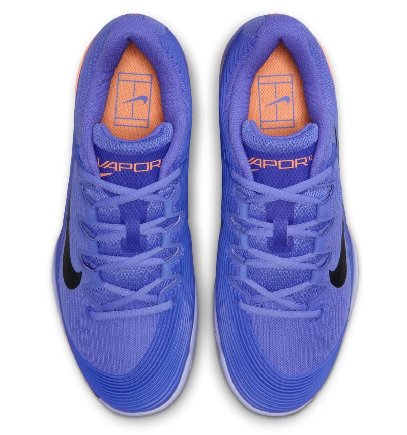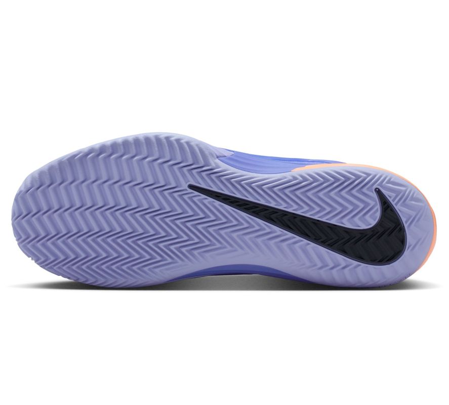 Женские теннисные кроссовки Nike Zoom Vapor 12 Clay - sapphire/black/light thistle. Двенадцатое обновление культовой серии обуви Air Zoom Vapor было проведено на основе отзывов как профессиональных игроков, так и любителей, а также с учетом данных об износе обуви на примере Holgera Rune. Модель обеспечивает еще большую легкость и динамику перемещений при сохранении высокого комфорта и отличной стабильности. Усовершенствованный верх из сетки большой плотности обеспечивает очень хорошую воздухопроницаемость, а усиления из литого полиуретана в ключевых зонах защищают наиболее подверженные истиранию точки на внутренней стороне и вокруг пальцев без увеличения веса обуви. Прочная пластина, окружающая область срединной части стопы, отлично поддерживает стопу, гарантируя уверенность при резких скольжениях, поворотах и сменах направления. Внутренний носок до половины верха улучшает посадку, дополнительно стабилизируя стопу боком. Использование под пяткой проверенной воздушной подушки Zoom Air обеспечивает высочайший уровень амортизации с динамикой отдачи и упругостью для следующего шага. Специальный протектор внешней подошвы CLAYBREAKER, разработанный с учетом карт давления и анализа зон, где скапливается больше всего пыли, обеспечивает отличное сцепление на грунтовых кортах и ограничивает прилипание осадка.