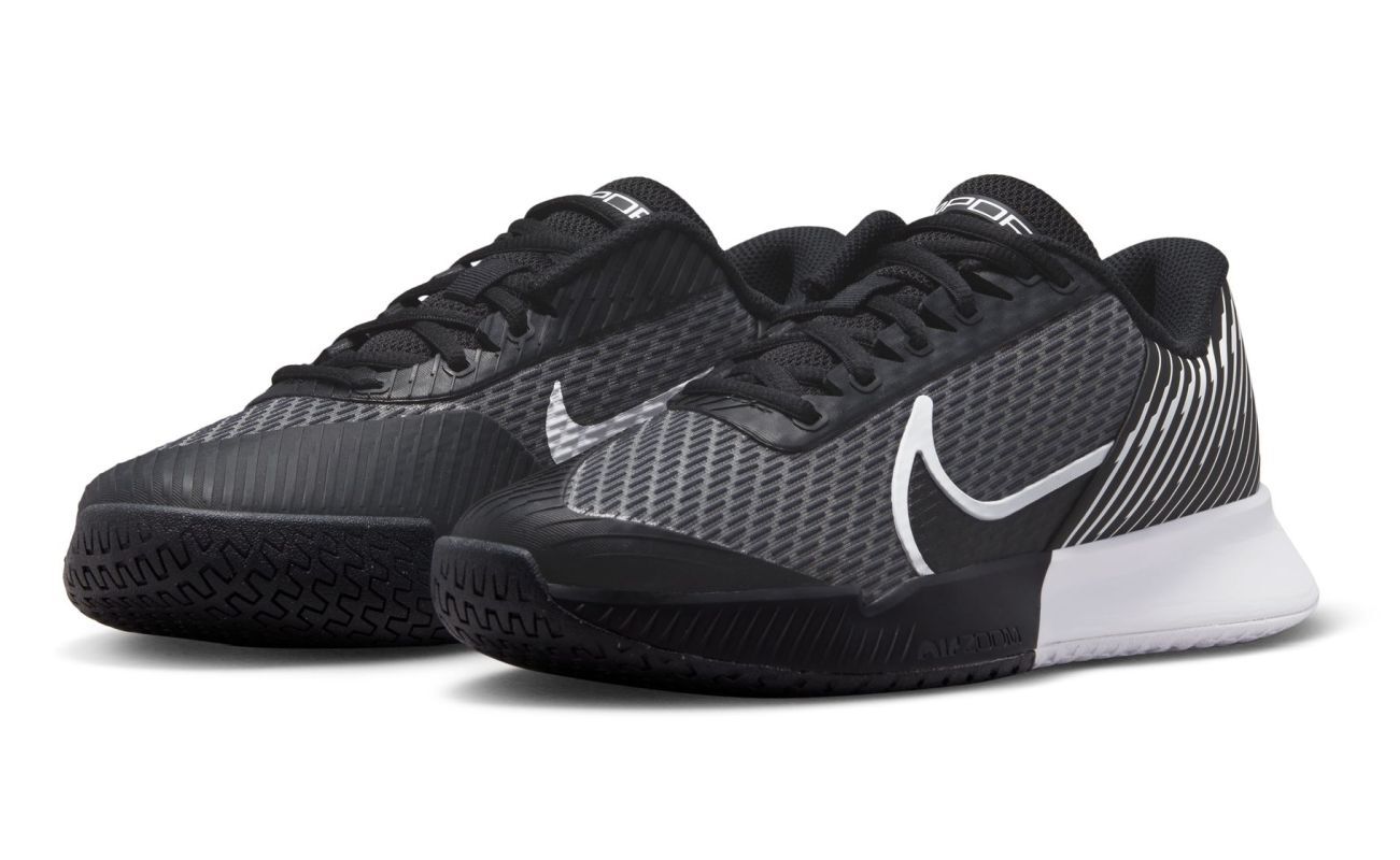 Женские теннисные кроссовки Nike Zoom Vapor Pro 2 HC - black/white. Наследник культовой модели Vapor Pro обладает всеми характерными элементами, благодаря которым эта серия обуви стала известна. Кроссовок исключительно легкий и обеспечивает хорошую поддержку стопы, что позволяет быстро передвигаться и выполнять молниеносные повороты. Сетчатая конструкция верха гарантирует отличную вентиляцию, а внутренняя носочная часть обеспечивает очень хорошую посадку. На сайте tennis-24.ru вы найдете эту модель с усиленной меш-панелью в местах, наиболее подверженных истиранию, которая дополнена специальной эластичной окантовкой для увеличения износостойкости. С участков с меньшей нагрузкой была удалена резина, чтобы минимизировать вес обуви. С внешней стороны добавлена укрепляющая конструкция, которая стабилизирует стопу при быстрых поворотах. В передней части кроссовка расположена газовая подушка ZOOM AIR, обеспечивающая отличную амортизацию, упругость и динамичность отскока. Благодаря профилю протектора, универсальная подошва не ограничивает возможности скольжений на твердых покрытиях.