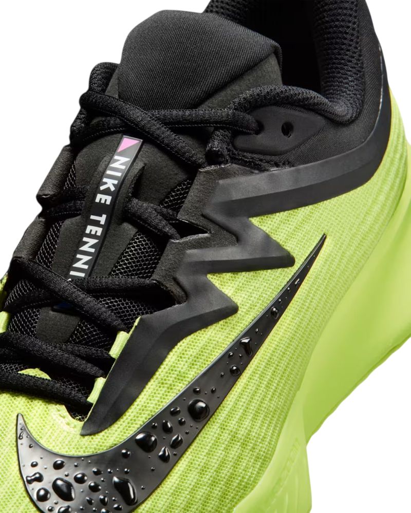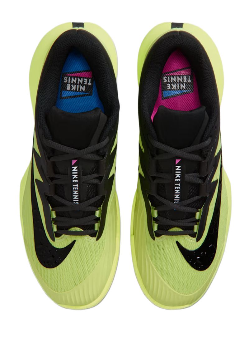 Женские теннисные кроссовки Nike Zoom Vapor Pro 3 Premium - light lemon twist/blue ribbon heather/laser fuchsia/black. Третья версия культовой модели Vapor Pro приносит улучшения и инновации, введённые инженерами Nike на основе предложений как профессиональных, так и любительских теннисистов. Сохранена столь ценимая исключительная лёгкость обуви, которая позволяет быстро перемещаться по корту, одновременно улучшая уровень поддержки стопы при молниеносных разворотах и комфорт при ношении весь день. Конструкция верха из прочной сетки гарантирует отличную воздухопроницаемость. Эластичная резиновая оболочка вокруг мыска и наиболее подверженной истиранию боковой внутренней области повышает долговечность. Удаление резины из зон, менее подверженных износу, минимизирует вес обуви. Язычок с частично интегрированной структурой внутренней носочки и полный ремешок в области средостопья, позволяющий сильнее затянуть шнуровку, обеспечивают улучшенную посадку и ещё более стабильно удерживают стопу при резких изменениях направления. Газовая подушка ZOOM AIR в средней подошве предлагает отличную амортизацию с превосходной пружинистостью шага. Кроме того, уменьшение размера подушки улучшило гибкость и сцепление передней части обуви, облегчая естественное сгибание при отталкивании и максимизируя динамику толчка. Благодаря профилю протектора внешняя подошва универсального назначения не ограничивает возможности скольжений на различных покрытиях.