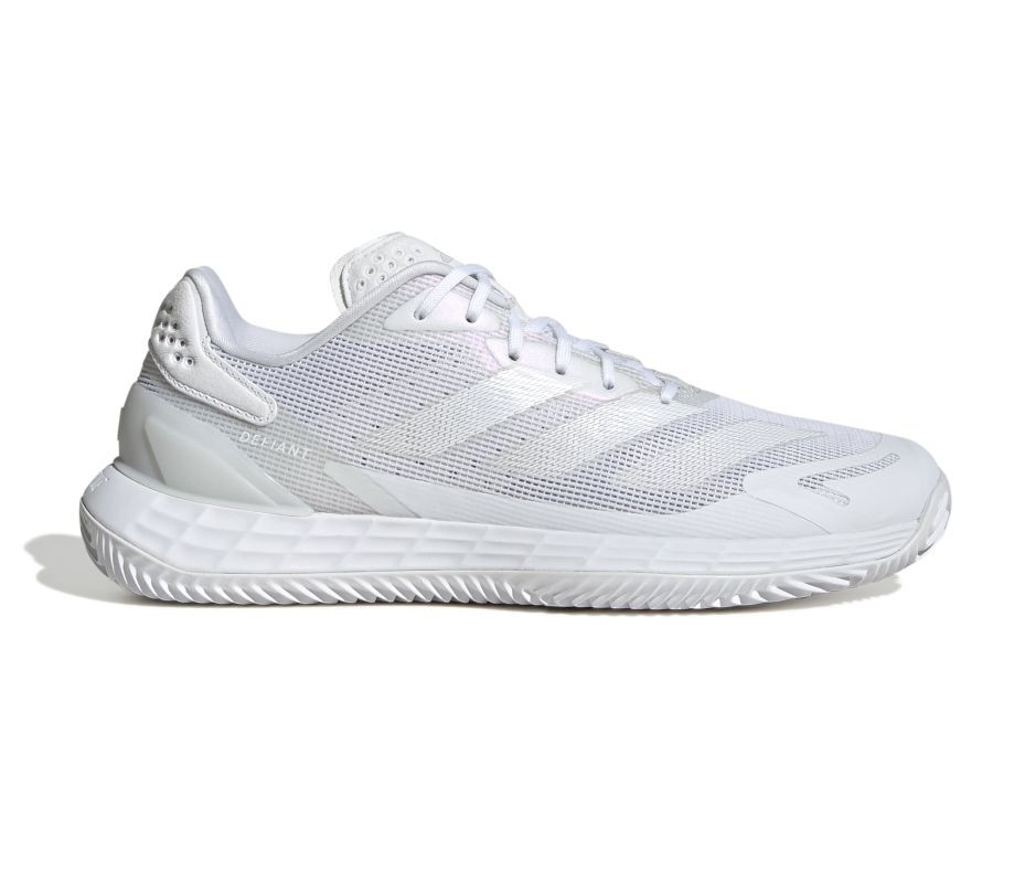 Женские кроссовки Adidas Defiant Speed 2 W Clay - cloud white/white. Модель легкая и комфортная, позволяющая быстро передвигаться по корту. Сетчатый верх из полотна обеспечивает хорошую воздухопроницаемость. Область пятки и наиболее подверженные истиранию зоны вокруг пальцев дополнительно укреплены, что увеличивает стабильность и поддержку стопы. Достигнута очень хорошая прочность и долговечность благодаря применению технологии Adituff. Средняя подошва с технологией Lightstrike обеспечивает отличную амортизацию и отзывчивость с динамичным отскоком. Прочная наружная подошва из резины Adiwear имеет протектор, предназначенный для игры на глиняных кортах.
