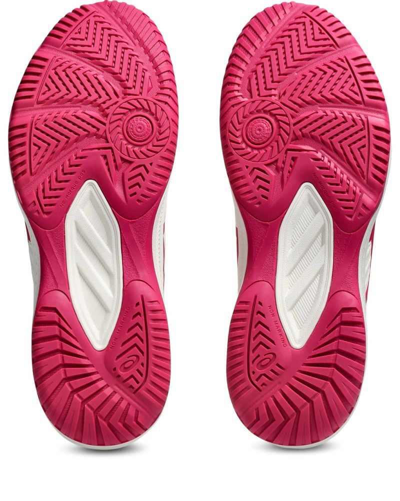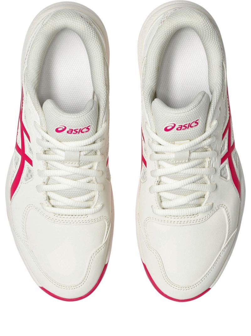 Женские кроссовки Asics Court Slide 4 - cream/bright rose. Язык частично выполнен из сетчатой панели, что способствует комфорту игры. Специальные вентиляционные зоны обеспечивают хорошую воздухопроницаемость. В наиболее уязвимых местах модель усилена слоем из синтетической кожи. Очень хорошая стабилизация и амортизация. Использована амортизирующая пенная технология EVA. Обувь имеет универсальную подошву с системой non-marking, благодаря чему не оставляет следов на твердых поверхностях.