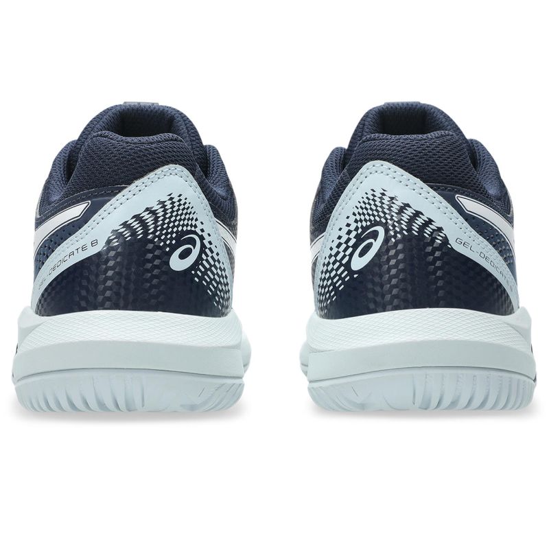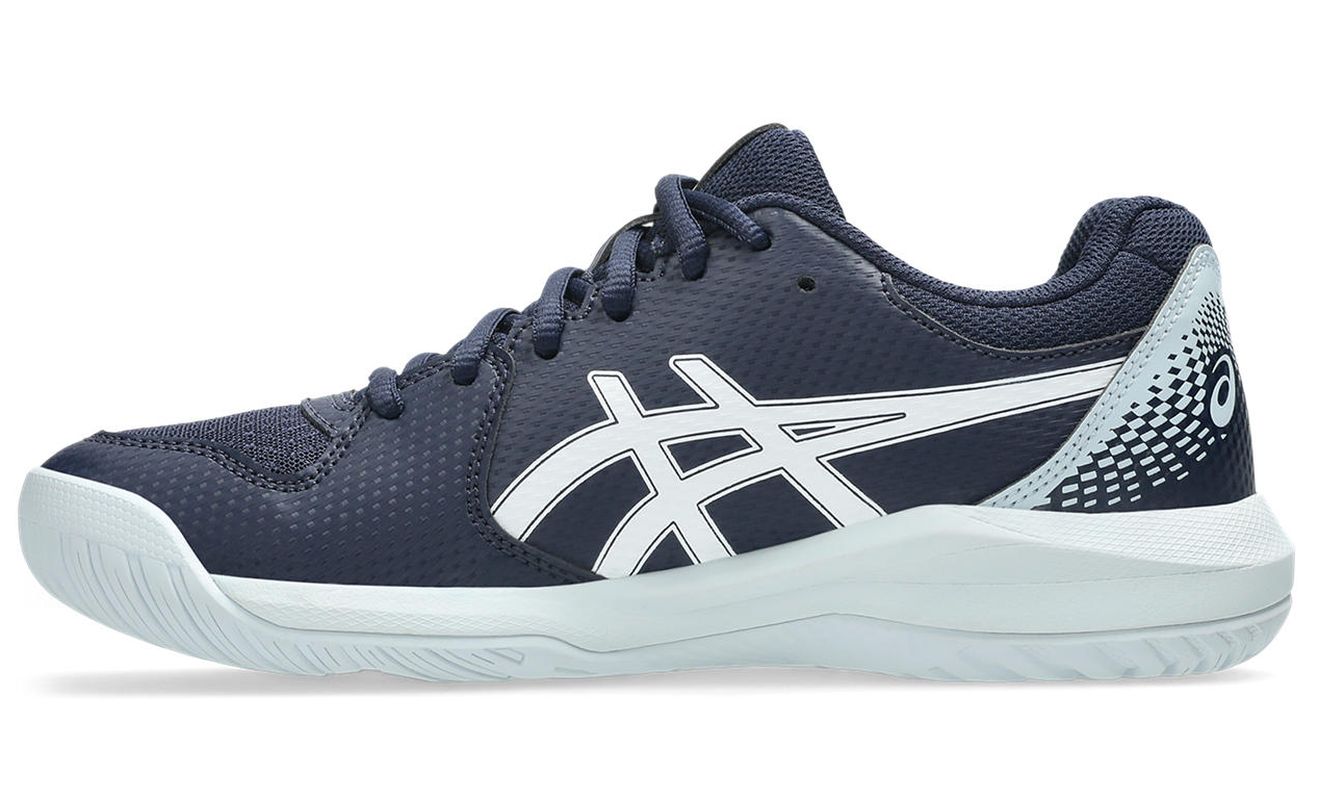 Женские теннисные кроссовки Asics Gel-Dedicate 8 - midnight/white. Обновленная версия модели Gel-Dedicate сочетает хорошую амортизацию и стабилизацию с высокой прочностью. Это обувь с более узким, идеально облегающим стопу кроем. Сетчатая передняя часть верха увеличивает воздухопроницаемость. Зоны, подверженные истиранию, обшиты и усилены накладками из синтетической кожи, что обеспечивает дополнительную поддержку стопы и хорошую износостойкость. Система Forefoot GEL Cushioning System в средней подошве обеспечивает оптимальную амортизацию, а технология Trussticsystem повышает комфорт и боковую стабильность. Модель имеет универсальную подошву с системой non-marking, выполненную из прочной резины AHAR+.