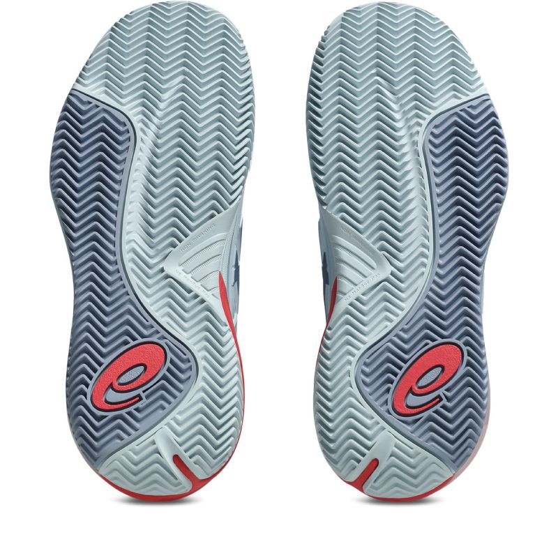 Женские теннисные кроссовки Asics Gel-Resolution X Clay - sky/grey blue. Десятое уже поколение культовой модели Asics Gel-Resolution, которой на этот раз присуща максима: «почувствуй удобство, обрети уверенность в себе»! Обувь по-прежнему предлагает столь ценимую в серии Gel-Resolution феноменальную стабильность и надежную защиту. Обновление на сезон 2025 добавляет к этому комфорт больший, чем когда-либо прежде. Верх изготовлен из композита долговечных и эластичных материалов. В наиболее подверженных повреждениям зонах он усилен системой PGUARD для максимальной прочности. Язычок, частично выполненный из mesh-панели, улучшает вентиляцию. Переработанный стабилизирующий элемент DYNAWALL™ теперь простирается от внешней стороны и оборачивает пятку, обеспечивая еще лучшую поддержку стопы, особенно при боковых движениях. Настраиваемая система шнуровки DYNALACING™ облегчает подбор индивидуального, безопасного и удобного уровня прилегания, одновременно дополнительно и надежно удерживая стопу в обуви. Новинкой является применение признанной в беговых кроссовках Asics, теперь адаптированной для тенниса технологии FF BLAST™+ ECO. Эта амортизирующая пена высокой легкости и мягкости стратегически размещена под пяткой, обеспечивая отличное гашение вибраций и чрезвычайно эффективный возврат энергии, вкладываемой в движение. Результатом является более легкий, упругий и динамичный бег. Конструкцию обуви дополняет полноразмерная монолитная внешняя подошва с протектором для игры на грунтовых кортах.