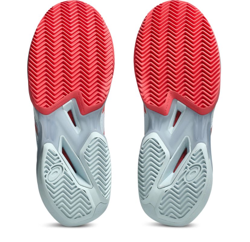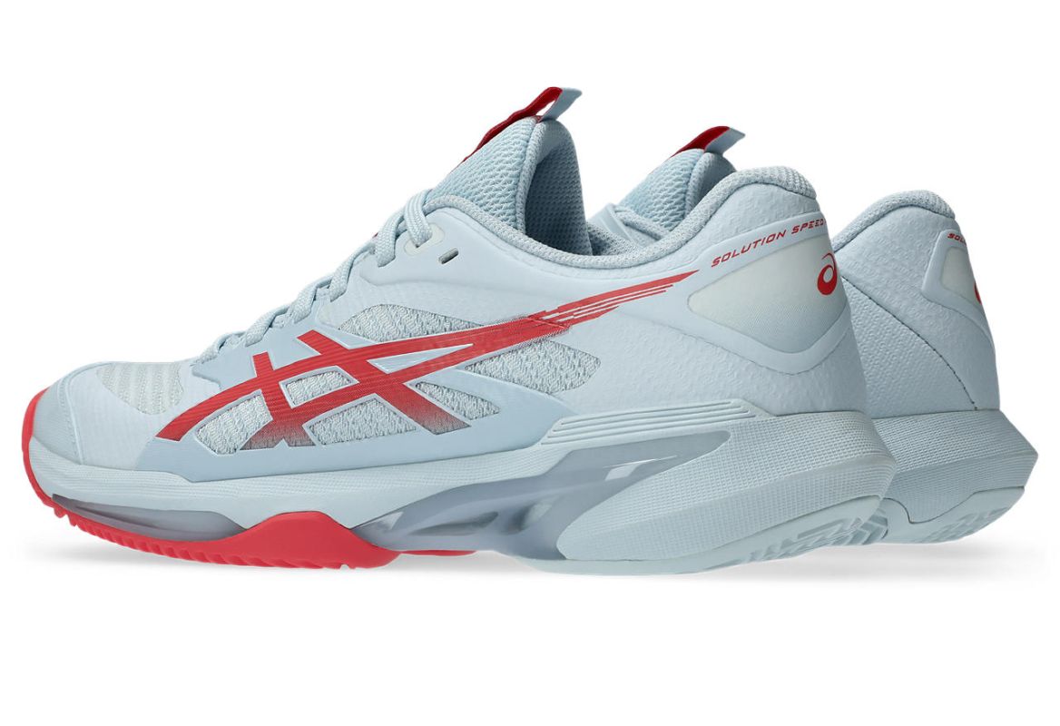 Женские теннисные кроссовки Asics Solution Speed FF 4 Clay - sky/sienna. Четвертое поколение самой быстрой модели теннисных кроссовок Asics вносит косметические улучшения, направленные на поддержку динамичных движений на корте, внедренные благодаря предложениям лучшей швейцарской теннисистки Belindy Bencic. Легкая и эластичная конструкция обуви обеспечивает отличное ускорение при переходе от полной остановки к спринту, что позволяет увеличить площадь корта, охватываемую игроком. Переработанный верх из сетки с более плотным плетением повышает воздухопроницаемость, а усиления в стратегических местах и PU-петля в верхней части внутренней стороны улучшают долговечность при сохранении низкого веса. Средняя подошва из модернизированной с использованием материалов биологического происхождения энергичной пены FLYTEFOAM гарантирует амортизацию высшего класса и феноменальный отскок для следующего быстрого шага. Также применена система SPEEDTRUSS, повышающая стабильность при боковых и диагональных движениях. Внешняя подошва PRECISION-SOLE™ с резиной ASICSGRIP™ в области пальцев обеспечивает превосходное сцепление, позволяющее быстро работать ногами. Кроссовки имеют протектор в виде елочки, предназначенный для игры на грунтовых кортах.
