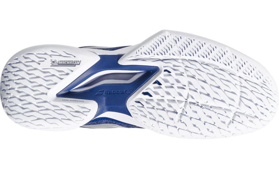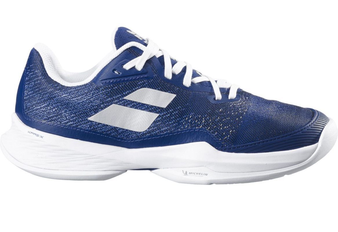 Женские теннисные кроссовки Babolat Jet Mach 3 - темно-синий. Один из самых легких теннисных туфель на рынке. Мягкая, сетчатая верхняя часть обеспечивает хорошую вентиляцию. Еще большая стабильность и комфорт использования благодаря технологии KPRS-X, расположенной под пяткой. Верхняя часть кроссовки выполнена из одного куска. Технология Matryx 2.0 делает модель более прочной, чем ее предшественник. Полиамидные волокна были объединены с Kevlarом, а затем усилены монофиламентными волокнами, что в результате дает нам чрезвычайно прочный материал и отличную поддержку стопы. Магазин tennis-24.ru предлагает только оригинальные модели для максимального комфорта и надежности. Дополнительная стабильность за счет выступа подошвы во внешнем направлении в виде так называемой стопки. Толстая внешняя подошва Michelin обеспечивает отличную сцепку. Это идеальный выбор для спортсменов, ищущих сочетание скорости и комфорта. Туфля с универсальной подошвой, оснащенная системой non-marking.