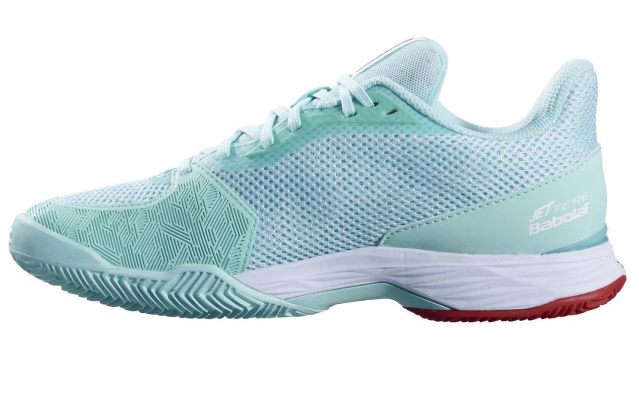 Женские теннисные кроссовки Babolat Jet Tere Clay Women - yucca/white. Новейшее предложение Babolat в сегменте теннисной обуви - Babolat Jet Tere All Court. Кроссовок разработан специально для обеспечения максимальной скорости и амортизации, одновременно гарантируя комфорт использования. Узкий крой позволяет добиться идеальной посадки. Мягкий сетчатый верх обеспечивает хорошую воздухопроницаемость. Повышенная защита пятки и высокий подъем обеспечивают феноменальное удержание стопы. Передняя часть расширена, что дополнительно повышает комфорт носки, особенно во время длительной и изнуряющей игры. Это идеальный вариант как для профессионалов, так и для любителей, которые серьезно относятся к теннису. По сравнению с предыдущей моделью конструкция усилена в ключевых зонах. Подошва предназначена для игры на грунтовых кортах. Применены следующие технологии: PODESZWA MICHELIN, KPRS-X, MICHELIN PERFORMANCE, ORTHOLITE.
