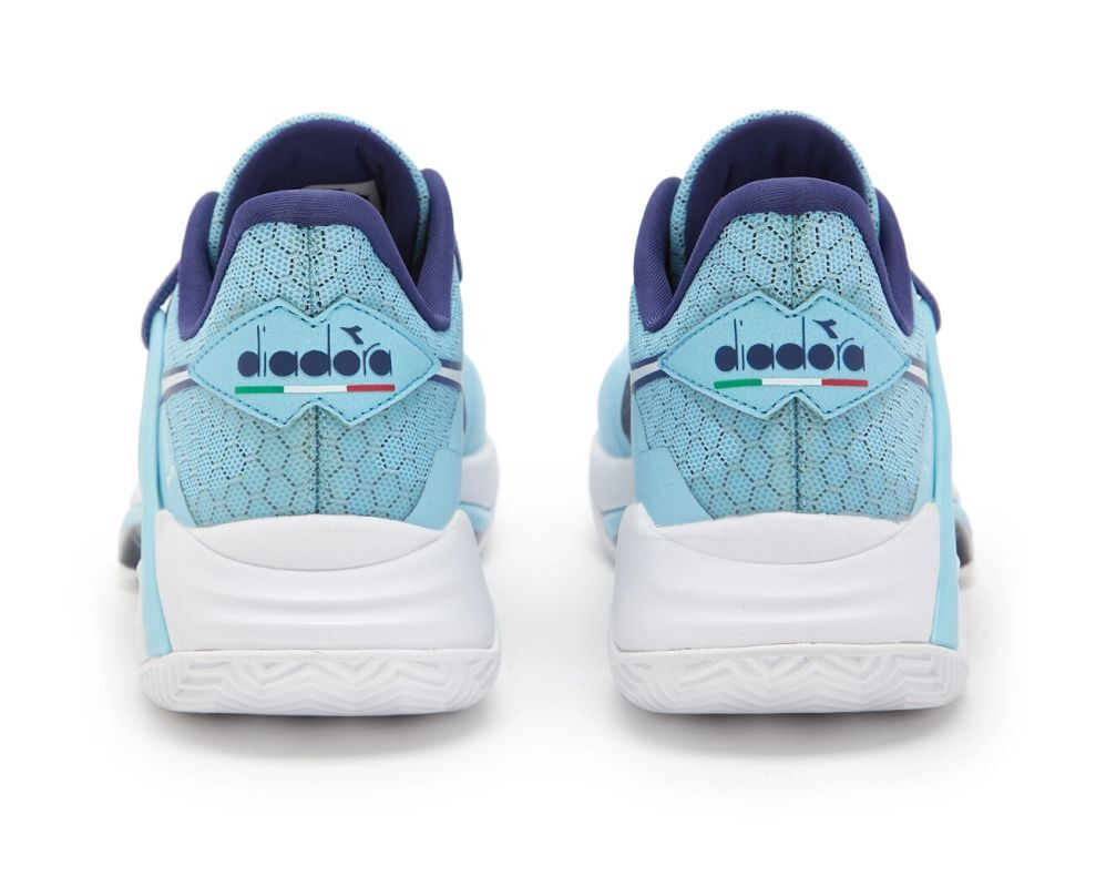 Женские теннисные кроссовки Diadora B.Icon 2 Clay - ярко голубой/белый. Модель предназначена для игроков, ищущих эластичную, комфортную обувь с достаточной поддержкой стопы. Верхняя часть голенища изготовлена из сетчатого материала, обеспечивающего хорошую вентиляцию. Задник, бока и точки, особенно подверженные износу, были дополнительно усилены. Интегрированный язык дополнительно позиционирует ногу в ботинке, увеличивая стабильность и комфорт. Магазин tennis-24.ru предлагает эту модель, сочетающую в себе инновационные технологии и стильный дизайн. Устойчивость и долговечность увеличивает примененная в голенище технология D-Skin. Внешняя подошва из резины Duratech 5000 гарантирует отличную сцепку. Она также оснащена системой non marking, которая не оставляет следов на поверхности. Учитывая профиль протектора, ботинок предназначен для игры на грунтовых кортах.