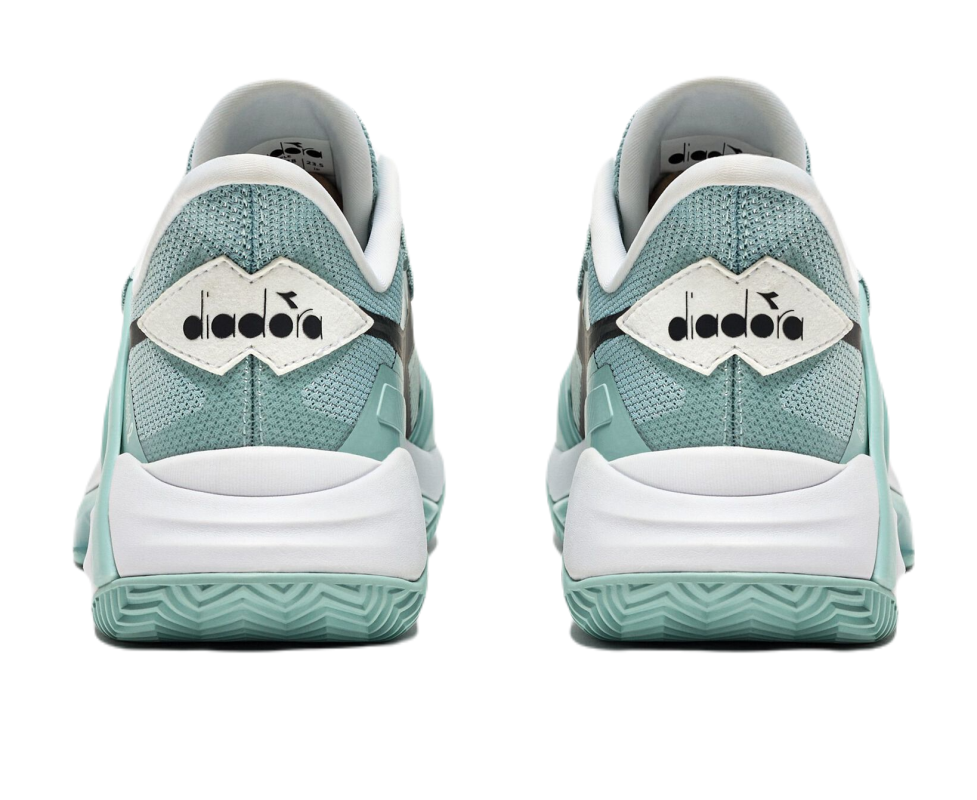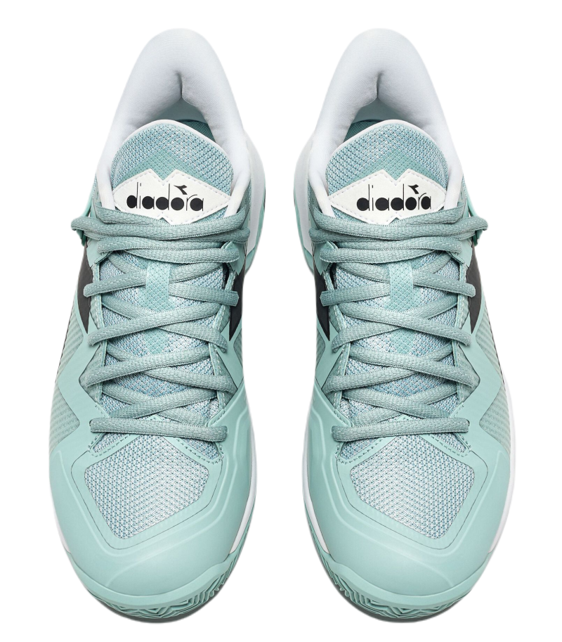 Женские теннисные кроссовки Diadora B.Icon 2 Clay - suf sparay/black. Модель предназначена для игроков, ищущих гибкую, комфортную обувь с надлежащей поддержкой стопы. Верхняя часть голенища выполнена из сетчатого материала, обеспечивающего хорошую воздухопроницаемость. Пятка, боковые части и участки, особенно подверженные истиранию, дополнительно усилены. Интегрированный язычок дополнительно фиксирует стопу в обуви, увеличивая стабилизацию и комфорт. Магазин tennis-24.ru предлагает эту модель, сочетающую в себе износостойкость и прочность благодаря применённой в голенище технологии D-Skin. Внешняя подошва из резины Duratech 5000 гарантирует отличное сцепление. Также оснащена системой non marking, которая не оставляет следов на поверхности. Благодаря профилю протектора обувь предназначена для игры на глиняных кортах.