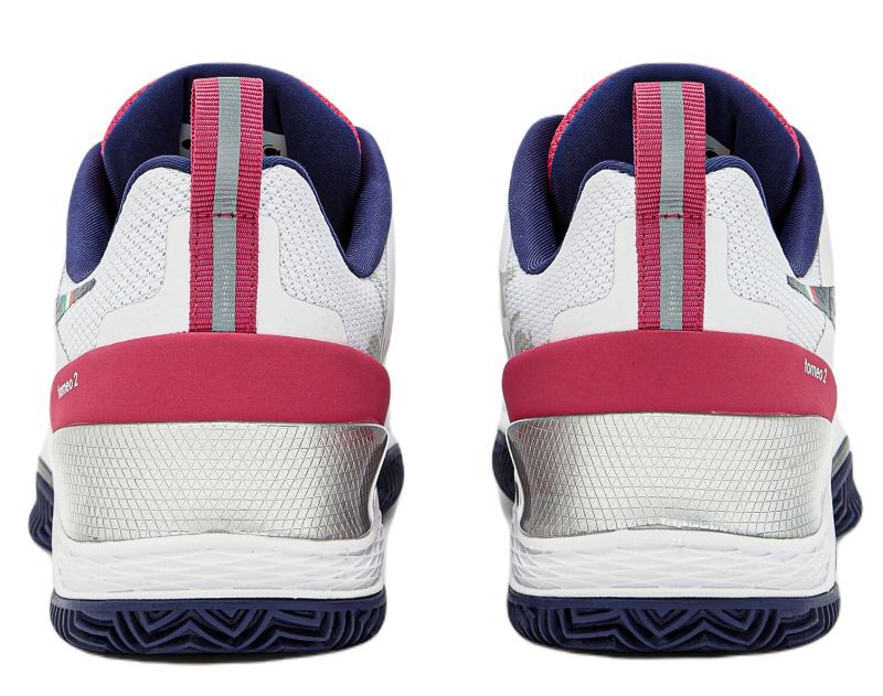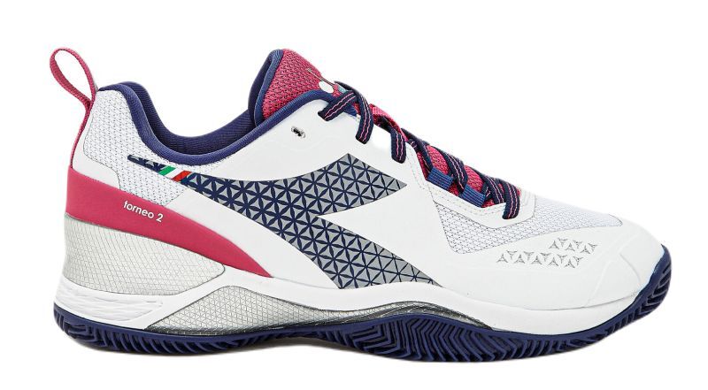 Женские теннисные кроссовки Diadora Blushield Torneo 2 Clay - белый/синий принт/розовый яровой. Панели сетчатой части в передней части голенища увеличивают вентиляцию. Очень хорошая поддержка стопы и амортизация. На сайте tennis-24.ru вы найдете эту модель с дополнительными усилениями в критических, наиболее подверженных износу зонах. Частично интегрированный язык дополнительно размещает ногу в ботинке, увеличивая стабильность. Применены следующие технологии: CCB, DURATECH 500, D-SKIN, SUPRELLTECH, BLUSHIELD. Модель с подошвой для глиняных кортов.