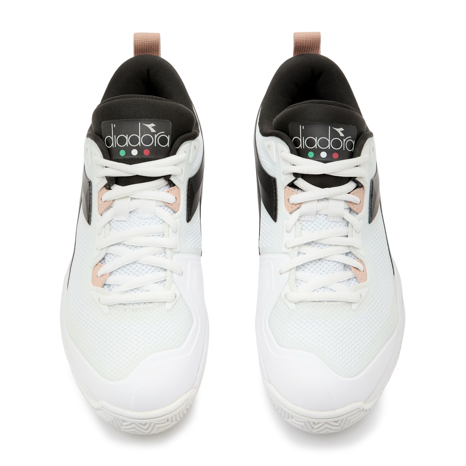 Женские теннисные кроссовки Diadora Speed Blushield 5 W Clay - белый/серебряный/черный.