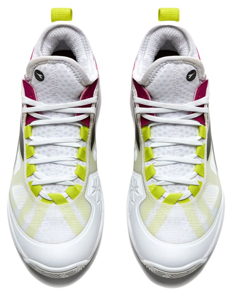 Женские кроссовки Diadora Speed Blushield Fly 4 + - white/black/vivacious. Новая, улучшенная версия проверенной модели Diadora Speed Blushield Fly. Модель предназначена для теннисисток, ищущих эластичную, комфортную обувь с соответствующей поддержкой стопы. Верхняя часть верха выполнена из сетчатого материала, усиленного резиной, что обеспечивает хорошую воздухопроницаемость. Пятка, боковые части и точки, особенно подверженные истиранию, дополнительно усилены. Стабильность и комфорт улучшают встроенный внутренний язычок и мягкая подкладка. Стойкость и долговечность повышает технология D-Skin, примененная в верха. Отличную амортизацию обеспечивает промежуточная подошва из мягкой, легкой и эластичной пены EVA. Технология Blushield в передней части обуви обеспечивает лучший перенос энергии, позволяя быстрее перемещаться по корту и менять направление движения. Внешняя подошва из резины Duratech 5000 гарантирует отличное сцепление. Версия с протектором «елочка», предназначенная для грунтовых кортов. Дополнительно внутренняя стелька с технологией ORTHOLITE устраняет неприятный запах и быстро отводит влагу.