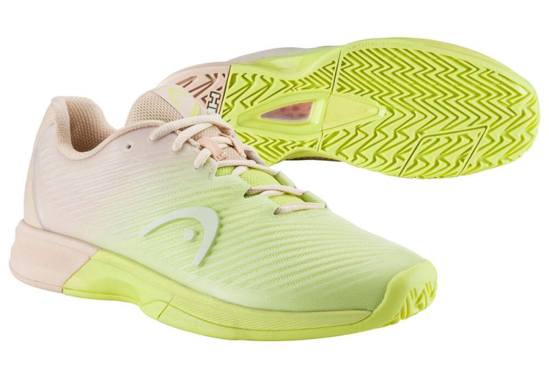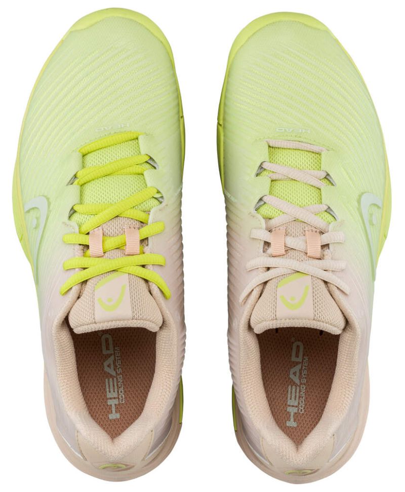 Женские теннисные кроссовки Head Revolt Pro 4.0 - macadamia/lime. Значительно улучшенная модель, которая на протяжении многих лет пользуется признанием. Новое воплощение представлено вместе с новой технологией T-KORE 360, которая отвечает требованиям современного тенниса. Обеспечивает идеальное сочетание вентиляции, стабильности и устойчивости к истиранию. Модель обеспечивает очень хорошую стабилизацию и амортизацию, что сказывается на повышенном комфорте игры в любых условиях. В наиболее важных местах применены усиления. Оригинальный дизайн также учитывает эстетические аспекты. Применены следующие технологии: T-KORE 360, TRI N-R-G, DRIFT DEFENSE, LATERAL CONTROL, LOCKDOWN STRAP, COOLING SYSTEM, HYBRASION+.