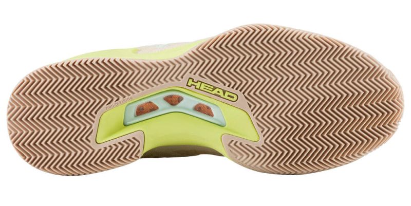 Женские теннисные кроссовки Head Sprint Pro 3.5 Clay - macadamia/lime. Специально сконструированный верх обеспечивает высокий уровень комфорта. Он был заново спроектирован, сеточка еще более прочная, обеспечивая при этом очень хорошую вентиляцию. Интегрированный язычок обеспечивает очень хорошую стабилизацию. Многочисленные усиления повышают прочность. Верх выполнен из прочного и дышащего слоя mesh-панели. Модель оснащена подошвой для игры на грунтовых кортах. Применены следующие технологии: TRI-NRG, COOLING SYSTEM, HYBRASION+, SOCK SUPPORT SYSTEM, DRIFT DEFENSE, LATERAL CONTROL, HEEL STABILIZER, DELTASTRAP.