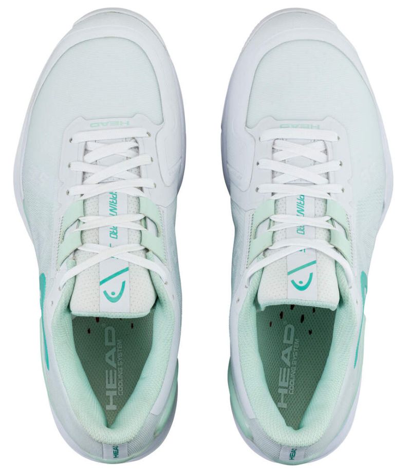 Женские теннисные кроссовки Head Sprint Pro 3.5 Clay - white/aqua. Передовая технологически модель, сочетающая легкость и скорость с очень хорошим комфортом. Специально сконструированный верх обеспечивает высокий уровень удобства использования. Верх переработан заново, сетка еще более прочная, обеспечивая отличную вентиляцию. Интегрированный язычок обеспечивает очень хорошую стабилизацию. Многочисленные усиления повышают прочность. Верх выполнен из прочного и дышащего слоя mesh-панели. Обувь оснащена универсальной подошвой с системой non-marking, предназначенной для игры на всех покрытиях. Применены следующие технологии: DELTASTRAP, LATERAL CONTROL, HEEL STABILIZER, SOCK SUPPORT SYSTEM, DRIFT DEFENSE, TRI-NRG, COOLING SYSTEM, HYBRASION+. DELTASTRAP.