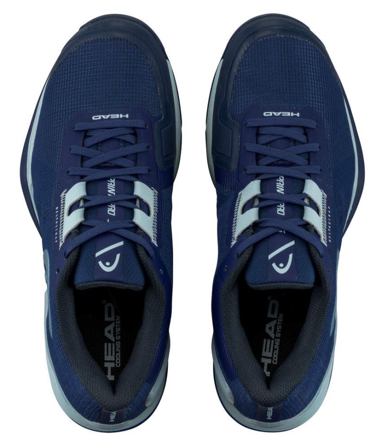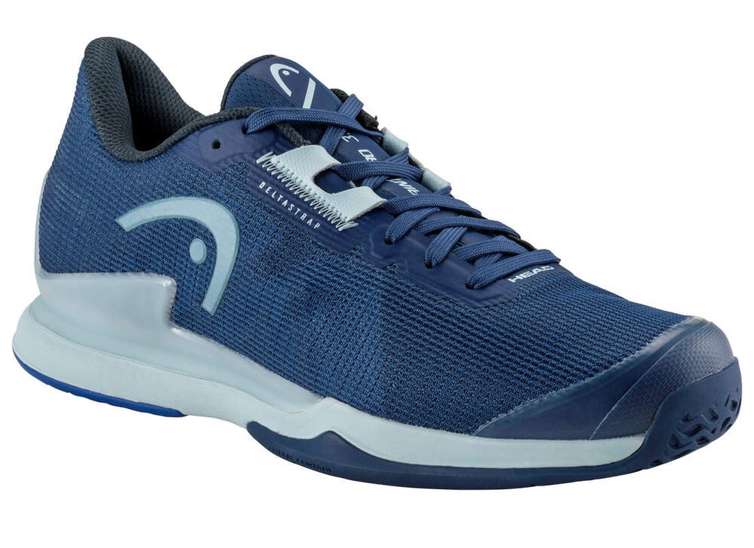 Женские теннисные кроссовки Head Sprint Pro 3.5 - dark blue/light blue. Технологически продвинутая модель, сочетающая легкость и скорость с очень хорошим комфортом. Специально сконструированный верх обеспечивает высокий уровень удобства при носке. Верх переработан заново, сетчатый материал стал еще прочнее, обеспечивая отличную вентиляцию. Интегрированный язычок гарантирует отличную стабилизацию. Множество усилений повышают долговечность. Верх выполнен из прочного и воздухопроницаемого слоя mesh-панели. Обувь оснащена универсальной подошвой с системой non-marking, предназначенной для игры на всех покрытиях. Использованы следующие технологии: DELTASTRAP, LATERAL CONTROL, HEEL STABILIZER, SOCK SUPPORT SYSTEM, DRIFT DEFENSE, TRI-NRG, COOLING SYSTEM, HYBRASION+.