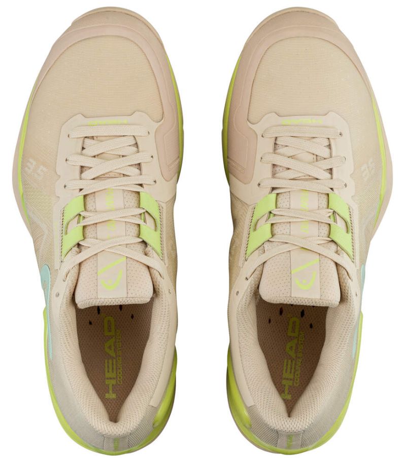Женские теннисные кроссовки Head Sprint Pro 3.5 - macadamia/lime. Специально сконструированный верх обеспечивает высокий уровень комфорта. Он был полностью переработан, сетка еще более прочная, обеспечивая при этом очень хорошую вентиляцию. Интегрированный язычок обеспечивает очень хорошую стабилизацию. Многочисленные усиления повышают прочность. Верх выполнен из прочного и дышащего слоя mesh-панели. Модель имеет подошву для игры на всех покрытиях. Применены следующие технологии: TRI-NRG, COOLING SYSTEM, HYBRASION+, SOCK SUPPORT SYSTEM, DRIFT DEFENSE, LATERAL CONTROL, HEEL STABILIZER, DELTASTRAP.