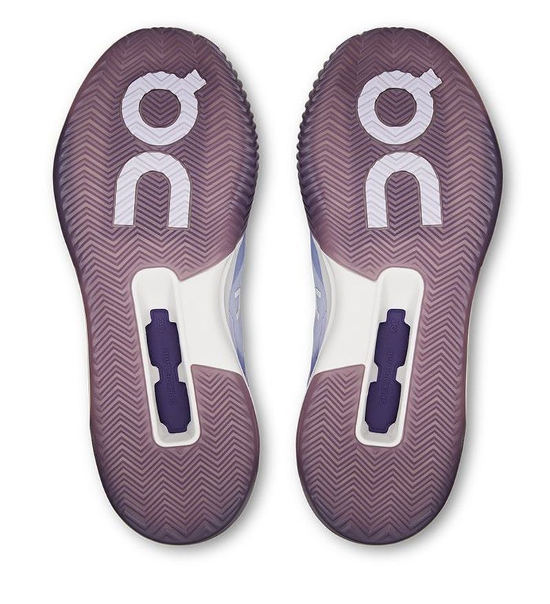 Женские теннисные кроссовки On The Roger Advantage Pro Clay - thistle/dewberry. Необычайно быстрый и динамичный модель, сочетающий лёгкость и высочайший комфорт носки с уникальным дизайном в спортивном уличном стиле, характерном для сникеров бренда On. Верх из вентилируемой, износостойкой сетки в сочетании с язычком, имеющим частично интегрированную конструкцию и перфорации, обеспечивает отличную воздухопроницаемость и чрезвычайно уверенно удерживает стопу в обуви. Скрытые поддерживающие элементы в зоне пятки и середины стопы дополнительно повышают стабильность. Область пальцев и внутренняя часть обуви оснащена резиновыми усилениями, повышающими стойкость при скольжениях. Технология CloudTec, поддержанная карбоновой пластиной Speedboard под срединной частью стопы, гарантирует амортизацию высшего класса и отличную упругость шага благодаря эффективному возврату энергии, вкладываемой в движение. Кроссовки имеют подошву с протектором «ёлочка», предназначенную для игры на грунтовых кортах.