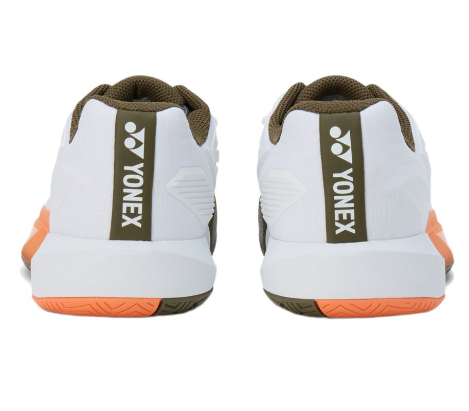 Женские теннисные кроссовки Yonex Power Cushion Eclipsion 5 - white/brown. Модель, выбираемая ведущими теннисистками, например, Еленой Рыбакиной, и разработанная для выдерживания самых агрессивных движений на корте при одновременном обеспечении высокого комфорта во время многочасовых матчей. Обеспечивает отличную стабильность и прочность, высочайший уровень амортизации и исключительную динамику отскока. Эластичный верх из ультратонкой сетки Double Raschel Mesh, усиленный резиновым материалом Endurance Rubber, сочетает оптимальную воздухопроницаемость и долговечность. Частично интегрированный язычок обеспечивает отличную посадку, а задний стабилизатор пятки повышает стабильность и поддержку стопы. Характерная подушка Power Cushion+ гарантирует превосходную амортизацию, а пластина Power Graphite Sheet в среднестопии максимизирует боковую стабильность. Также применены технологии: Toe Assist Shape, Round Sole, Synchro-Fit Insole. Кроссовки оснащены универсальной подошвой с системой non-marking, не оставляющей следов на твердых покрытиях.