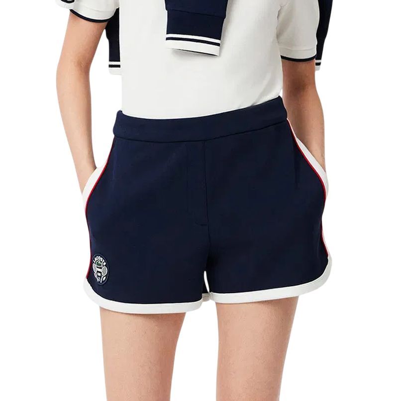 Женские шорты Lacoste Tennis Heritage Stretch Pique - темно-синие/белые. Прямые трикотажные шорты выполнены в классическом крое. Резинка на поясе обеспечивает хорошую посадку по фигуре, а значит, комфорт при носке. Два боковых кармана с открытым доступом. На сайте tennis-24.ru вы найдете только оригинальные модели с высоким качеством изготовления и используемых материалов. Внизу штанин нашивка, отсылающая к производителю и теннисному клубу. Шорты выполнены с применением технологии: STRETCH.