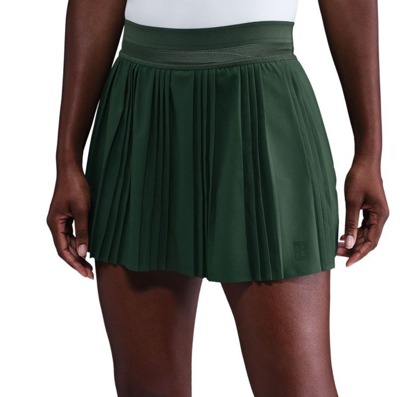 Женская юбка Nike Court Advantage Dri-Fit Pleated - fir/fir. Плиссированная юбка с эластичным поясом из сетки обеспечивает хорошую посадку и лучшую вентиляцию во время игры. Встроенные короткие спортивные шорты с карманами для мячей по обеим сторонам. Плоские швы минимизируют риск натираний и раздражений. Сдержанное логотип производителя внизу юбки с левой стороны. Юбка выполнена из дышащего материала, эффективно отводящего влагу, с применением технологии DRI-FIT.