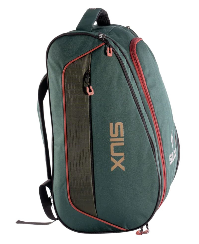 Сумка для падел Siux Edge 2026 - green. Трехсекционная сумка, которая может вместить в общей сложности 2 ракетки. Главная, вместительная средняя камера позволит хранить весь необходимый ассортимент. Две обитые перегородки, которые позволят переносить ракетки. Две внешние карманы для аксессуаров, закрывающиеся на молнию. Две регулируемые и обитые лямки, а также ручка для установки сумки вертикально позволят комфортно переносить. Высокое качество исполнения. Объем 42л.