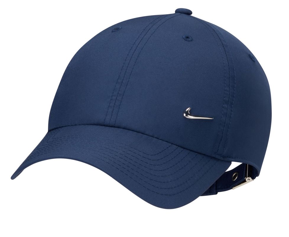 Кепка Nike Dri-Fit Club Unstructured Metal Swoosh - midnight navy/metallic silver. Классический, простой дизайн и исполнение. В верхней части отверстия, увеличивающие циркуляцию воздуха. Кепка регулируется на металлический фиксатор в задней части. Спереди видно логотип Nike. Кепка обладает технологией: DRI-FIT.