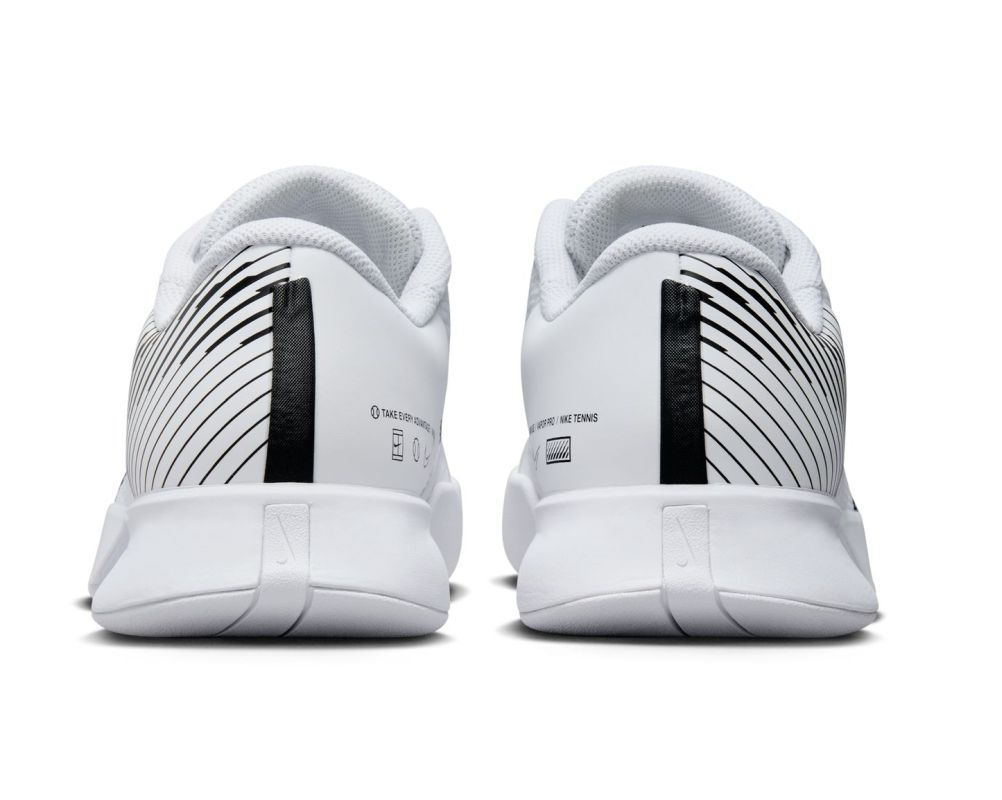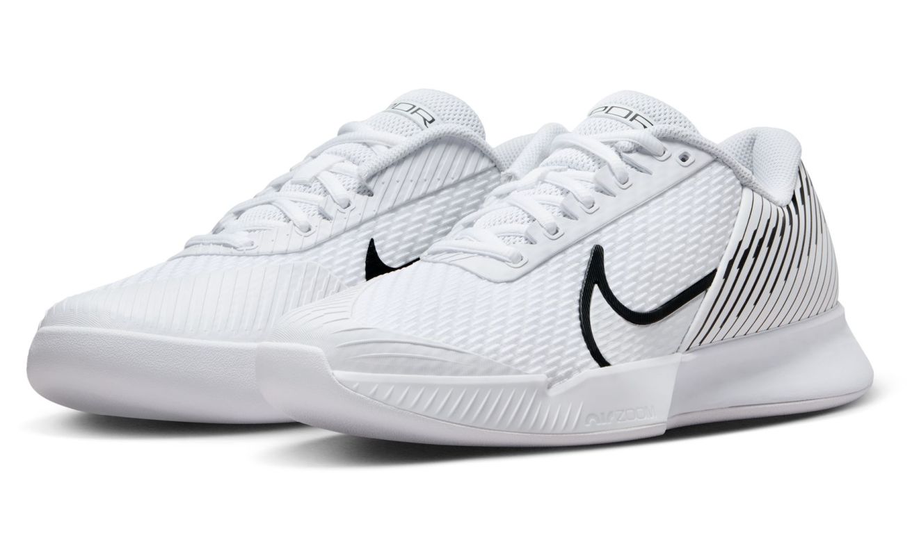 Теннисные кроссовки Nike Zoom Vapor Pro 2 CPT - white/black. Преемник культовой модели Vapor Pro обладает всеми характерными элементами, которыми прославилась эта серия обуви. Кроссовок исключительно легкий и обеспечивает хорошую поддержку стопы, что позволяет быстро перемещаться и выполнять молниеносные повороты. Сетчатая конструкция верха гарантирует отличную вентиляцию, а внутренний носок, облегающий стопу, обеспечивает очень хорошую посадку. Сетчатая панель в наиболее подверженных истиранию местах усилена специальной эластичной оболочкой, повышающей прочность. Из зон, менее подверженных износу, убрана резина, чтобы свести вес кроссовка к минимуму. С внешней стороны добавлена жесткая конструкция, стабилизирующая стопу при быстрых поворотах. В передней части размещена воздушная подушка ZOOM AIR, обеспечивающая отличную амортизацию, упругость и динамику отскока. Благодаря профилю протектора модель предназначена для игры на ковровых кортах.