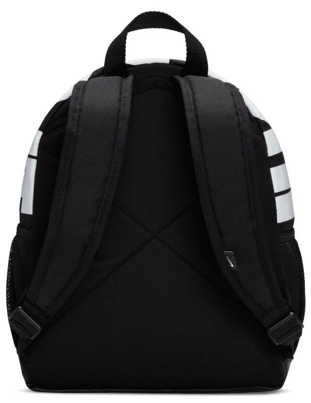 Рюкзак Nike Brasilia JDI Mini Backpack - black/black/white. Небольшой, практичный детский рюкзак с логотипом Nike Just Do It. Основное отделение на молнии и внешние карманы для аксессуаров позволят безопасно хранить и переносить вещи. Прочная конструкция с мягкими лямками гарантирует комфорт использования. Ручка для вертикального положения и две регулируемые лямки позволят удобно переносить. В комплекте с рюкзаком идет брелок для ключей.