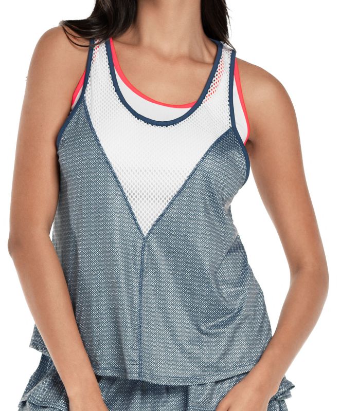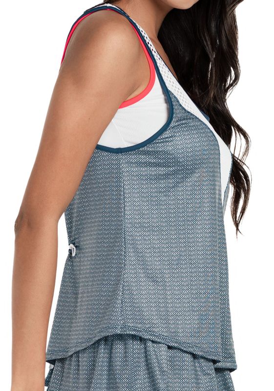 Женский топ Lucky in Love Palms D'Amour Royal Palm Layer Tank - slate. Эластичный материал обеспечит хорошее прилегание к фигуре. Встроенный дополнительный топ обеспечивает больший комфорт и защиту во время активности. Вышитый материал в форме отверстий обеспечит вентиляцию и уникальный вид. Топ произведен из дышащего материала с применением технологии: VAPORTEX.