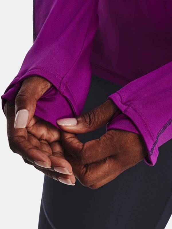 Женская теннисная футболка с длинным рукавом Under Armour Train Cold Weather 1/2 Zip - strobe/tempered steel. Застёгивается на короткую молнию под горловиной. Высокий воротник обеспечит защиту. Эластичный материал, плотно облегающий тело. Тёплая, приятная на ощупь подкладка обеспечит высокий комфорт при ношении. Рукава завершены дополнительным материалом с отверстием для большого пальца. Слегка удлинённая спинка обеспечит защиту. Футболка выполнена из дышащего материала.