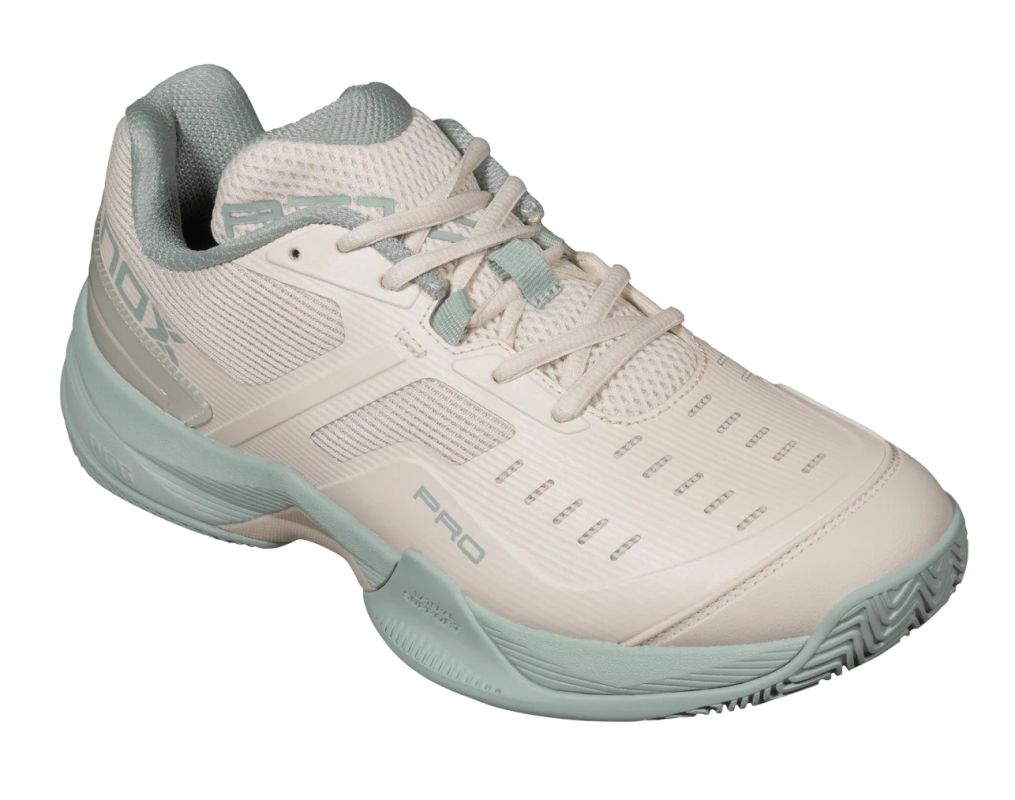 Женские кроссовки для Падел NOX AT10 Pro - aspargus/frosty green. Разработаны таким образом, чтобы минимизировать риск травм и оптимизировать производительность игрока на корте падела. Протестированы в лаборатории, имеют клинические сертификаты Центра технологий обуви INESCOP в Аликанте, Испания. Версия PRO модели AT10 с более прочными усилениями верха по бокам и в зоне пальцев, а также дополнительно укрепленным задником обеспечивает еще лучшую поддержку стопы во время динамичных движений. Зоны с панели mesh и язык из сетки обеспечивают оптимальную вентиляцию. Технологии ABRAXONE и LATERAL SUPPORT увеличивают боковую стабильность, минимизируя риск вывиха голеностопного сустава. Внутренняя стелька ORTHOLITE с антибактериальными свойствами и уменьшающая ощущение усталости обеспечивает отличный комфорт во время игры. Технология AGG (Advanced Gravity Geometry), расположенная под пятой, повышает drop (высоту пятки относительно пальца), благодаря чему заставляет игрока принимать правильную постановку, снижая перегрузки и способствуя амортизации. Протектор Optimal GRIP гарантирует отличное сцепление на покрытиях падела.